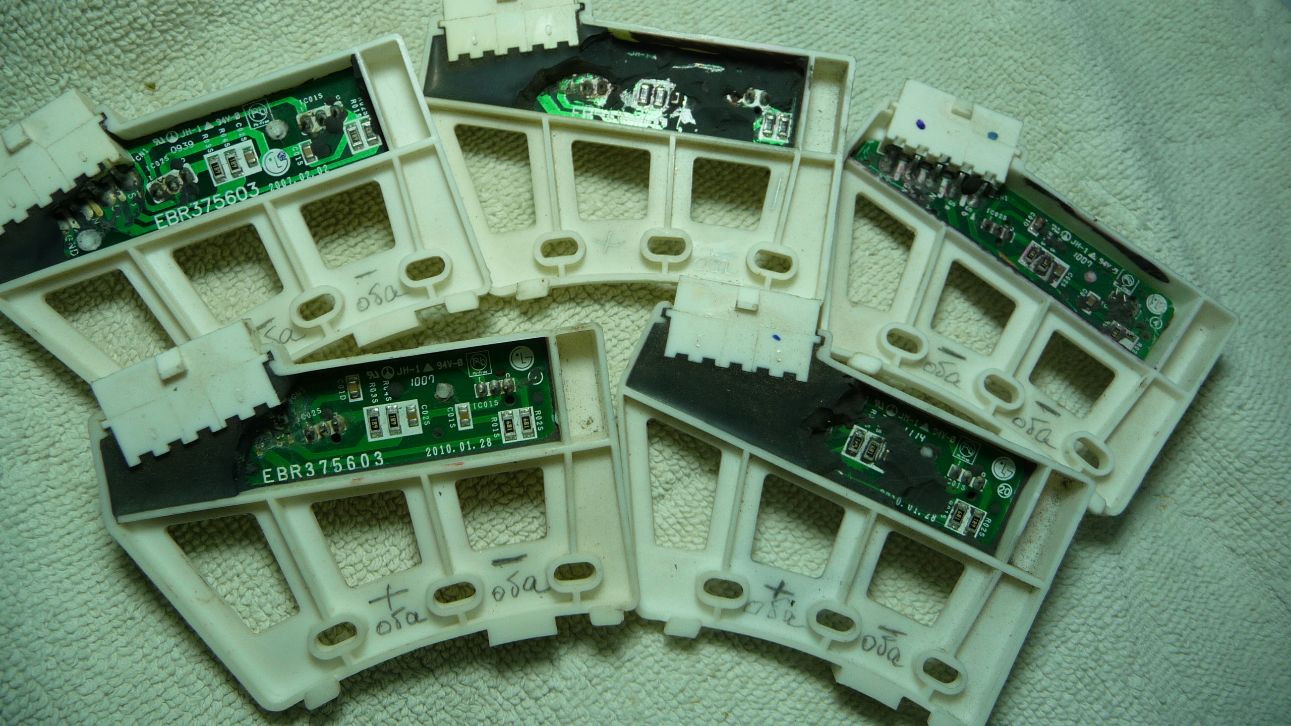 Модуль после межфазного.Мастер,кто принёс,говорит,что в хате дохрена чего погорело и кроме этого...Я за 24 года много чего видел,но чтобы так... (IMG:style_emoticons/default/shocked.gif) Обычно, когда нет заземления, установлена на не штатный автомат и стоит в сырости - такое и есть. |